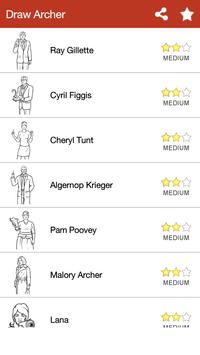 We offer you an extensive catalog of Archer characters where you can choose that character that you like and start to draw.