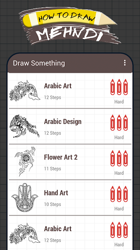 Każdy rysunek Mehndi jest podzielony na kilka kroków i łatwo jest śledzić, więc ta aplikacja pokazuje, jak narysować projekty Mehndikrok po kroku.Zapewniamy również slajd dla dzieci, które mogą zobaczyć kolejne ilustracje krok po kroku i budować swoje umiejętności i poziom pewności z dużą ilością zabawy.