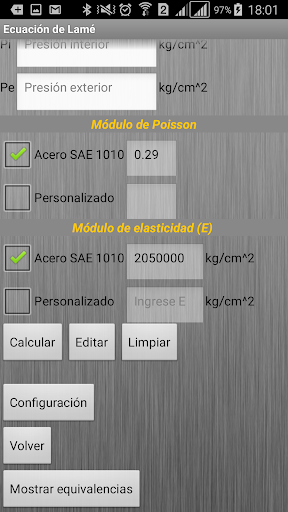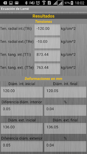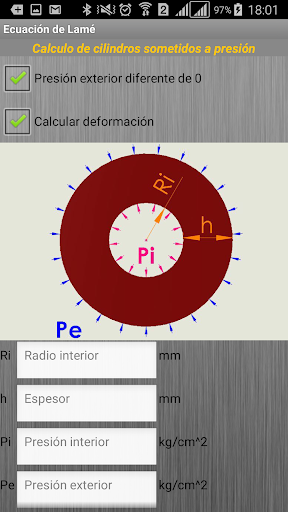 Wejście Wewnętrzne radio cylindra, grubość cylindra, wewnętrzny / zewnętrzny Ciśnienie: