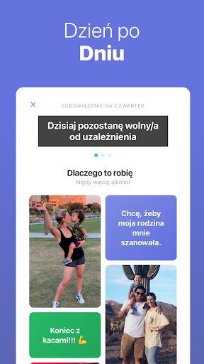 Wraz ze śledzeniem dni trzeźwości pomaga ona budować nowe nawyki i zapewnia stałą motywację, łącząc Cię z szeroką społecznością ludzi, którzy dążą do tego samego celu: pozostania trzeźwym każdego dnia.