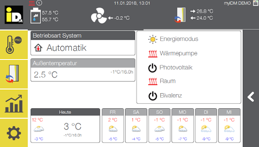 Dzięki tej aplikacji możesz kontrolować swoją pompę ciepła IDM od czasu.Masz dostęp do każdego z 6 obwodów grzewczych, możesz ustawienia przygotowania ciepłej wody za pomocą technologii słodkiej wody i technologii HGL zoptymalizowanej energii.