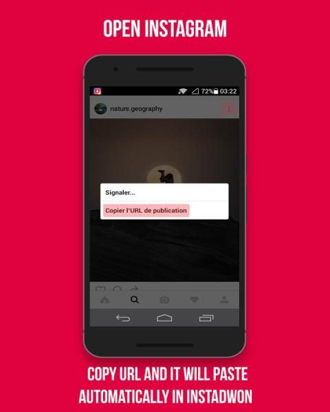 Instadown downloader allows to download videos and images from instagram links. By copying image's and video's link and it will pasting automatically in instadown downloader for instagram app's dashboard then you can download manually or automatically public instagram images and Video to your phone.