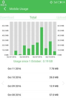 * Data usage monitor - Monitor your traffic data for the last 30 days. Both mobile data usage and wifi data usage statistics are available.