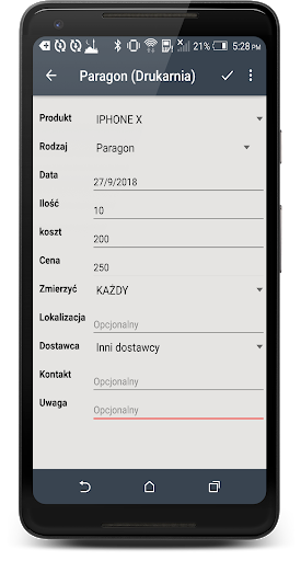 o Produkty: Stwórz produkt zintegrowany z programem czytnika kodów kreskowych, aby korzystać z kodu kreskowego. Możesz również przechowywać obraz produktu.