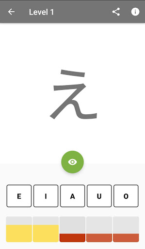 In the application, all syllables are divided into 24 levels. At the first level, five vowels are suggested, each time the number of syllables increases to ten - five new, plus five of the passed. Access to the next level is opened if the number of errors is not more than three and the button for viewing the answer has not been pressed.