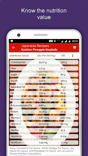 * Wartość odżywcza wszystkich japońskich potraw i wszystkich składników.