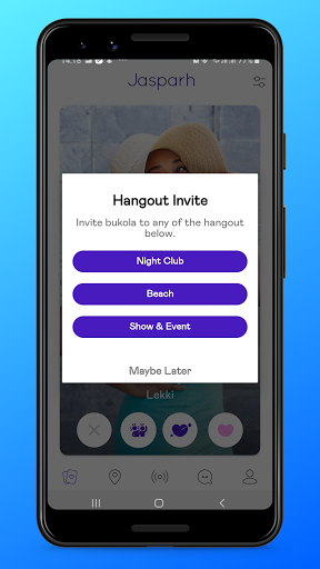 Możesz wskazać swoje preferencje hangouty, dzięki czemu łatwo innym ludziom zaprosić cię do spotkań.Ponadto Jasparh ma jeden ze świata najbardziej bezpieczny sposób, aby zweryfikować użytkownika, każdy użytkownik na Jasparh jest weryfikowany, bez fałszywego profilu, bez oszustów