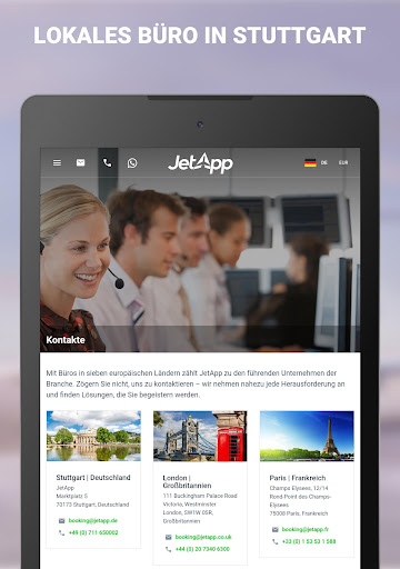 - > JetApp jest w 100 % elastyczny, profesjonalnie w każdym szczególe i zawsze tylko jedno przesuwanie na ekranie urządzenia mobilnego.Z niecierpliwością czekamy na Twoje zapytanie!
