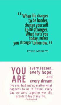 Whether it's making that big career change or simply making it to the gym, stay motivated with a little reminder from these amazing backgrounds! The colorful wallpapers in this app feature powerful quotes, phrases and images to keep you on the path to meeting your goals!