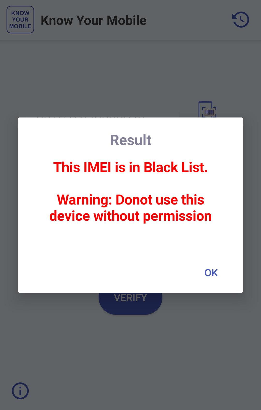 Developed by Centre for Development of Telematics (C-DOT), this app will verify any mobile by its IMEI number. KYM will provide status (Invalid/ Black Listed) or provide details like Manufacturer, Brand name and Model name of the given IMEI. While purchasing a mobile device, the genuineness of mobile devices can be verified using KYM App.