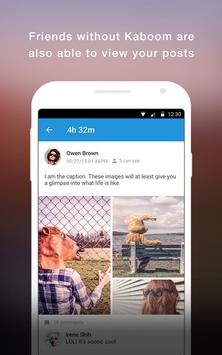 Every day, billions of photos and messages are being posted online to exist through infinity. You have no control over who views what you share, and how long the posts live unless you manually delete them. Kaboom gives your full privacy and security control back - over what you share online, where you share it and how long it lives