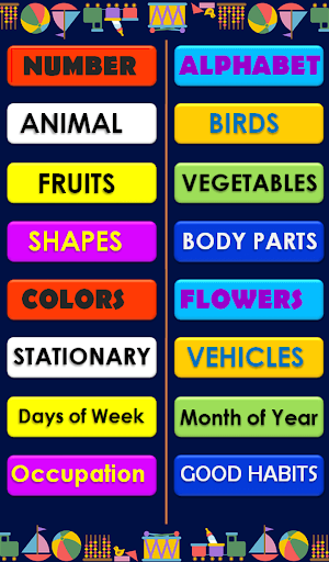 Kids Learning, Kids Ogólna wiedza (GK), uczenie się dziecięce dla przedszkola, UKG, LKG i dzieci.Wszystko w jednym dla dzieci uczą się z następującymi ważnymi tematami w Kids GK, Learning Mobile App: