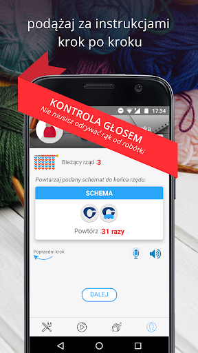 *** Wystarczy, że powiesz aplikacji na głos kiedy chcesz przejść do następnego kroku. Nie musisz odrywać rąk od robótki.