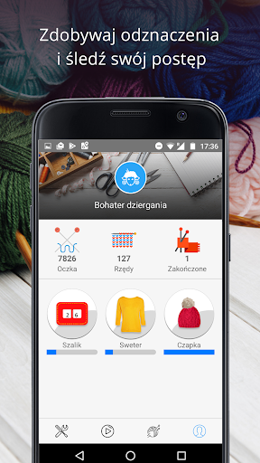 *** Zdobywaj odznaczenia i śledź swój postęp. W każdej chwili możesz zobaczyć, ile oczek i rzędów przerobiłeś!