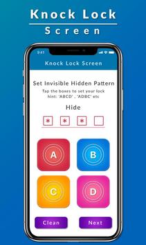 Knock lock app: Create a pattern on knock to secure your phone screen. Also you can hide that screen.So, None can see guess your pattern while unlock the lock.