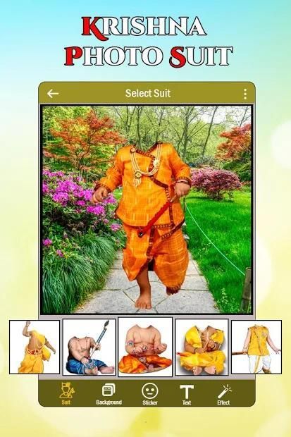 - Beautify your photo using stunning and attractive Lord Krishna Photo Suit of your choice.