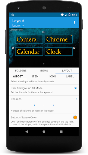 Zakup in-App jest używany do uaktualnienia do Launchy Pro, który ma jeszcze więcej funkcji dostosowywania.