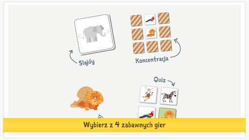 • Ucz i baw się: ambitne gry (slajdy, gra na koncentrację, puzzle i quiz).