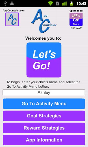 Chodźmy! Pozwala rodzicom szybko ustanowić zabawną i łatwy w użyciu plan zarządzania zachowaniem, gdy wychodzą na wspólne działania. Chodźmy! Obejmuje chodzenie do sklepu, chodząc do restauracji, idąc w samochodzie, idzie do przyjęcia urodzinowego. Każda z pięciu działań ma cztery proste cele zachowań (takie jak przy użyciu spokojnego głosu i pobytu z rodzicem) i dwie zindywidualizowane nagrody (mniejsze i większe). Po aktywności współczynnik rodzicielski zachowanie dziecka na każdym celu, a następnie animowany ekran nagrody pokazuje dziecko, jak on lub ona zrobił na celach, a jeśli nagroda została zdobyta (mniejszy lub większy).