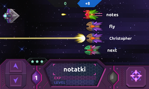 - Invaders - Nadlatują najeźdźcy z kosmosu! Zestrzel statek z poprawną odpowiedzią. Pytanie znajduje się w dolnej części ekranu.