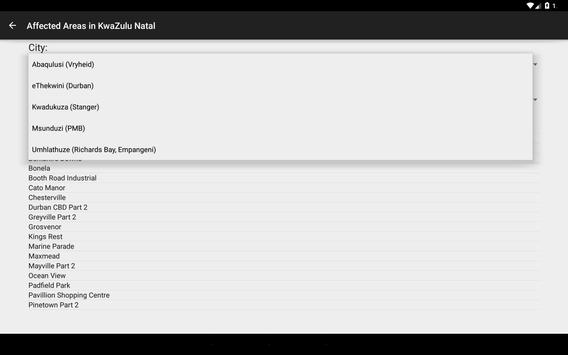 -An OFFLINE complete listing of all the estimated currently affected areas within all of South Africa