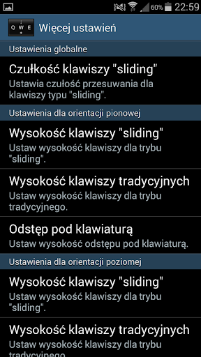 - Wysokość klawiatury w orientacji pionowej i poziomej