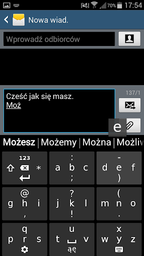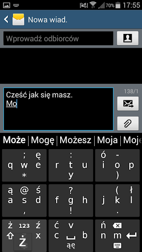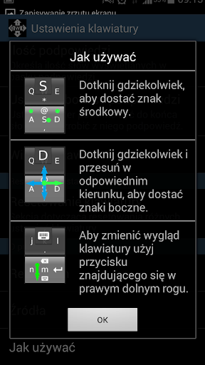 Jeśli będziesz mieć problemy z przyzwyczajeniem się do nowego sposobu pisania zawsze możesz natychmiast przełączyć się w widok tradycyjnej klawiatury. Uzyj do tego celu przycisku znajdującego się w