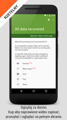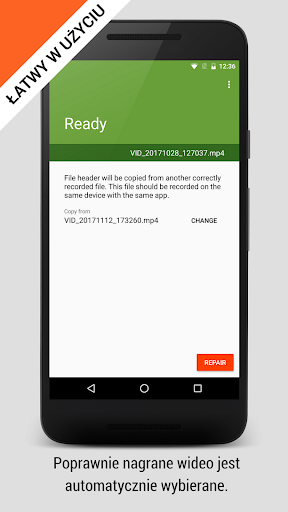 Wszystko czego potrzebujesz aby przywrócić niedziałający plik to dodatkowy prawidłowy film wideo nagrany na tym samym telefonie przy użyciu tej samej aplikacji.