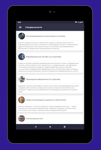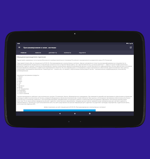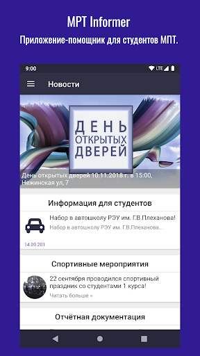 Ta aplikacja pozwala uczniom, kandydatom i studentom, aby otrzymali najważniejsze i najważniejsze informacje na temat instytucji edukacyjnej "FGBOU na rosyjski Uniwersytet Ekonomiczny o nazwisku GV Plekhanov Moscow Instrument-Distra Technical School."