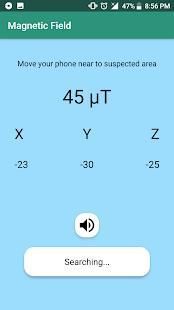- Magnetic field detector also let you find your lost mobile phone or any other electronic device even if it is hidden under clothes.