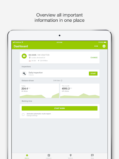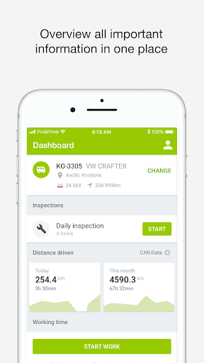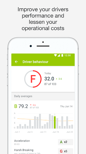Logowanie; Pracownicy pola i śledzić aktualizacje statusu. Zachowanie kierowcy pomoże Twoim kierowcom poprawić swoje wyniki i zmniejszyć koszty operacyjne. Będziesz mógł zobaczyć codzienne wyniki jazdy - prędkość ECO, czas na biegu jałowym, rejsowe wykorzystanie, wybieganie, ostre hamowanie, przyspieszenie i zakręty, zielony obroty.