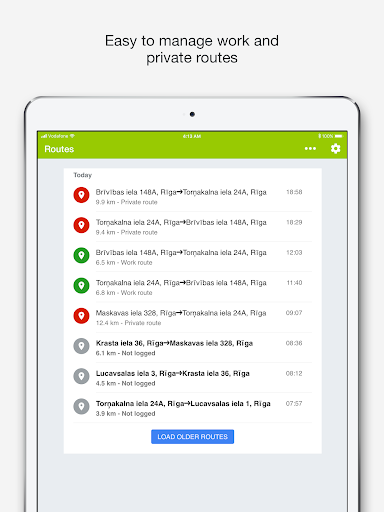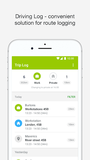 dziennik jazdy pozwala zarządzanie prywatnymi i pracami. Możesz łatwo dodawać komentarze, nazwę klienta i koszty na każdą trasę i przeglądać raporty w systemie.
