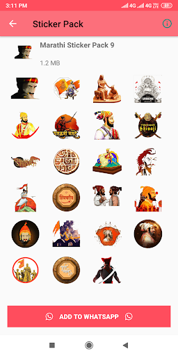 app you can find Lots of Marathi Stickers for Whatsapp with different categories.