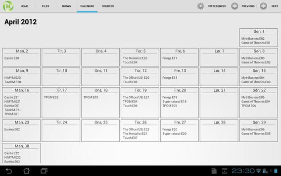 - Episode calendar, giving a nice overview of upcomming episodes.