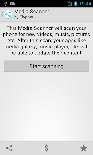 media ScannerThis Media Scanner will scan your phone for new videos, music, pictures etc. After this scan, your apps like media gallery music player etc. will be able to update their content