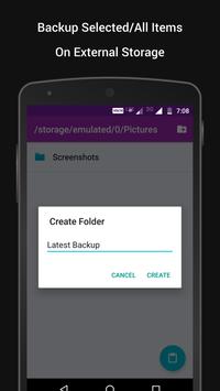✔ Backup single/multiple items to External Storage. Browse External Storage and provision of creating new folder.