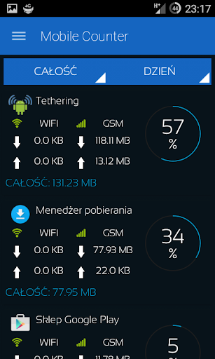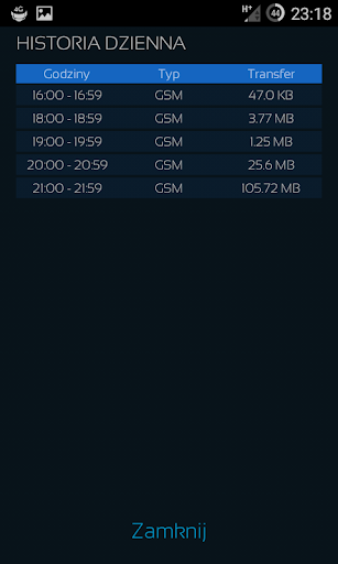 - Zużycie danych dla WIFI, GSM