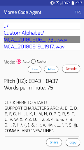 Pro version: https://play.google.com/store/apps/details?id=com.erdatsai.morsecodeagentpro