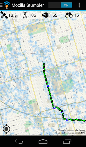 , our crowd-sourced location database. As you move around, the app "stumbles" upon new Wi-Fi networks and cell towers. The Mozilla Location Service combines these wireless network measurements to provide geolocation services for Firefox and other open source projects. For more information, visit our project page: