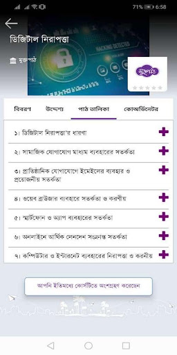 To jest ostateczna wersja „Muktopaath”aplikacje Android.Muktopaath to platforma e-learningowa dla edukacji, umiejętności i rozwoju zawodowego.Różne kursy edukacyjne i treści są dostarczane przez Muktopaath dla zróżnicowanych specjalistów, w tym nauczycieli, migrujących pracowników, bezrobotnych młodzieży, rolników, dziennikarzy, urzędników państwowych i organizacji pozarządowych.Muktopaath oferuje również kursy i samouczki dla bezrobotnych i niedostatecznie zatrudnionych młodzieży z Bangladeszu w celu zachęcenia ich do samozatrudnienia.Użytkownicy mogą rejestrować swój kurs i ukończyć kurs, udzielając egzaminów, quizów, zadań itp. I mogą uzyskać swoje cyfrowe certyfikaty po ukończeniu każdego kursu.