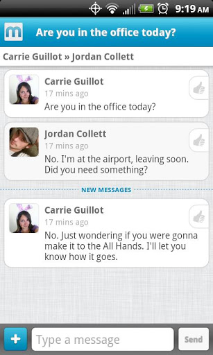 .Mumbo Messenger connects people in your organization, helping them share information and stay current. You can share photos and locations create polls, and spark discussions about work, life, and everything in between.You can create and join groups and see your colleagues who are already using Mumbo.We require that you sign up with and verify your work email address.
