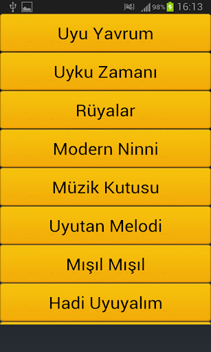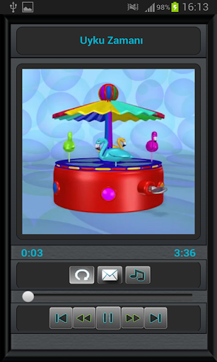Twoje dzieci nie śpią, czy mówisz, że kołysanka spała? A może grasz muzykę z muzyki do snu? Myślę, że byłbyś bardzo zadowolony, mówiąc, że opracowaliśmy aplikację, która gra piękną muzykę snu (podobnie jak w zabawnych pudełkach muzycznych). Nasza aplikacja jest idealnym kaftanem dla niemowląt i dzieci, które śpią z muzyką do spania. Ponieważ jest muzyka dzieci, która sprawia, że spanie. Muzyka, która zaczyna odtwarzać, ciągle się powtarza, zanim się skończy. Jeśli ponownie naciśniesz przycisk, ta funkcja zostanie natychmiast anulowana. Możesz także poświęcić 10 sekund i z powrotem za pomocą przycisków tam iz powrotem i przełączyć się na następną muzykę za pomocą jednego przycisku. Co więcej, jeśli dasz im telefon podczas słuchania muzyki, twoje dzieci mogą się dobrze bawić dzięki ich wspaniałym animacjom muzycznym, które je przyciągną. Jest to również tak skuteczne, że jeśli mówisz, że śpię, słuchając muzyki, możesz sam słuchać naszej muzyki i używać jej jako dzwonka i dźwięku wiadomości. Lullaby, piosenki dla dzieci i bajki, jedzenie dla dzieci, muzyka dla kobiet w ciąży, takie jak wiele aplikacji, takich jak aplikacja czeka na Ciebie.