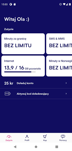 W każdej chwili możesz sprawdzić, ile pieniędzy na saldzie, danych, minut, SMS-ów i MMS-ów Ci pozostało, a także, jeśli to konieczne, dokupić więcej!