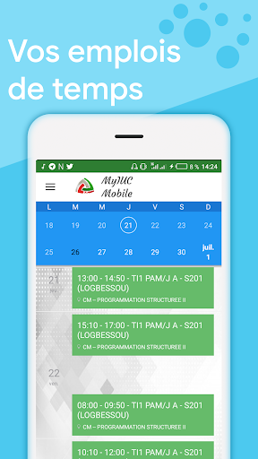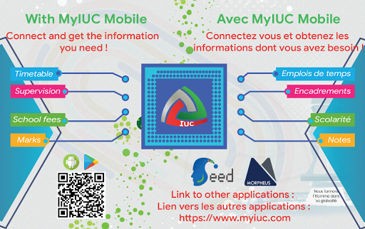 MyIUC Mobile est une application qui met à la disposition des enseignants et des étudiants un ensemble de ressources et d'informations relatif à leur parcours au sein de la sphère académique de l'Institut Universitaire de la Cote.