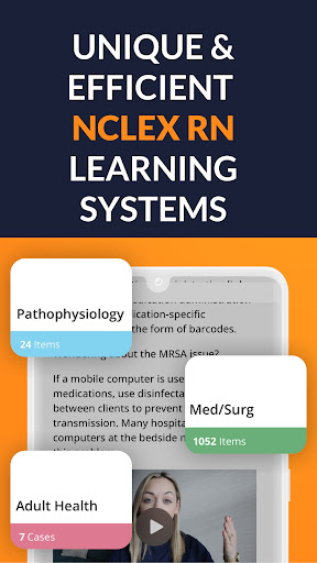 weź nclex-rn symulowanePrzestępczno i posttest, badaj 3000 alternatywnych pytań na urządzenie mobilne, skróć czas nauki z NCLEX RN Mastery Efektywne systemy uczenia się i przeglądaj narzędzia pielęgniarskie .