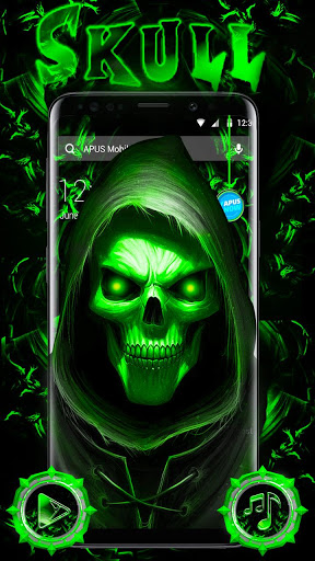 Opis Neon Emerald Skull Apus Launcher Theme 2019