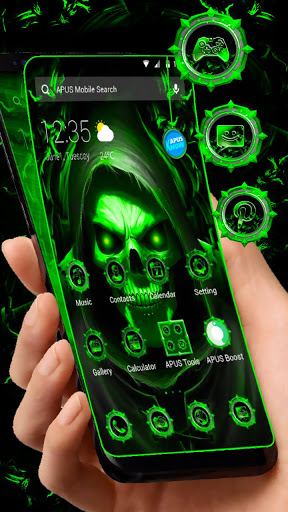 To apply the theme, please install our launcher first. Apply the Emerald Neon Skull Launcher Theme to make your phone faster, orderly and cool. The original app icons, clock and weather theme of your phone will be replaced by the Emerald Neon Skull Launcher Theme. We have designed many customized themes for popular apps, these include camera apps, social apps, entertainment apps, useful tools and messenger apps. Our app also provides you thousands of themes from other categories, namely cartoon and anime themes, graffiti themes, gold themes, pink themes, black themes, love themes and many more. All of our beautiful themes are free and available at Google Play Store. Download and apply Emerald Neon Skull Launcher Theme now! There are more sports (football, basketball), games and other beautiful themes waiting for you!