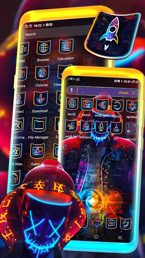 HD wallpapers and splendid app icons give you intense visual pleasure. You will own the new Cool Neon Mask Man theme .Neon Mask Man theme is an Android theme for Galaxy S20 with 3D special effects, perfectly thematic device icons and cool Neon Mask Man theme wallpapers. Neon Man Theme suits most Android phones, including Samsung S20, Huawei Mate8, etc. To activate your amazing experience and to make your phone look gorgeous, install the Neon Mask Man Theme.