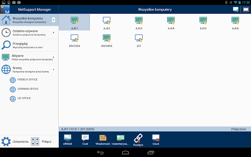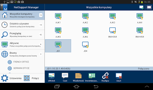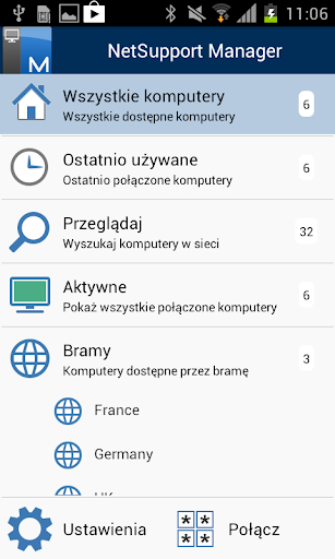 Nowa możliwość sterowania mobilnego pozwala użytkownikowi szybko wyszukiwać i łączyć się z lokalnymi komputerami przy pomocy adresu IP lub nazwy komputera, a także wyszukiwać, łączyć się i oglądać zdalne komputery przy użyciu elementu bramki internetowej NetSupport Manager.