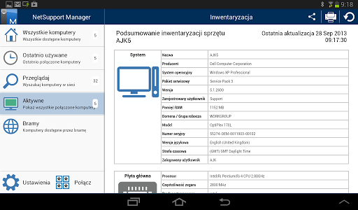 Generowanie na życzenie pełnego raportu o zasobach sprzętu dla zdalnego urządzenia.